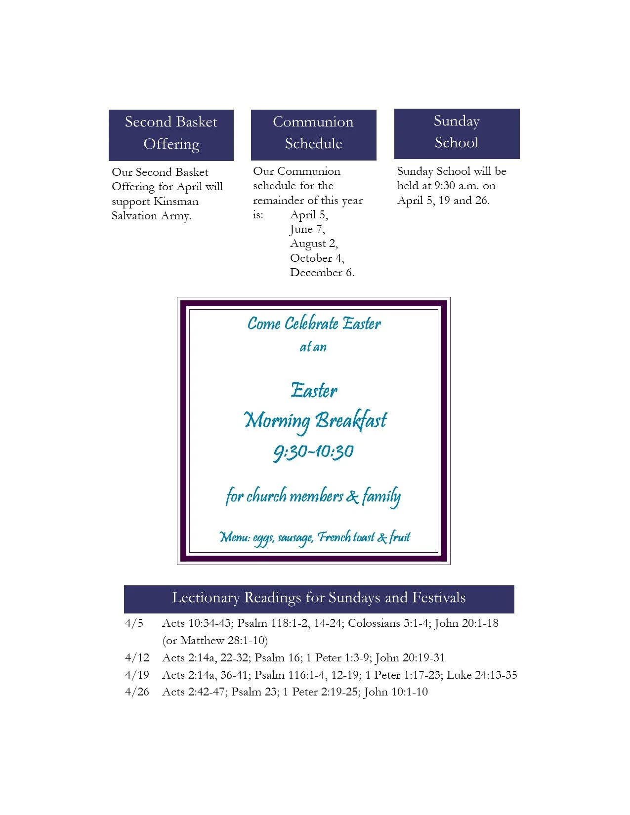 It is hard to believe we are in April already! Despite time passing by so quickly, I am glad that it is now officially spring. It has been a brutal winter—frigid temperatures, large amounts of snow, even a rare cancellation of worship in January—we deserve a reprieve!